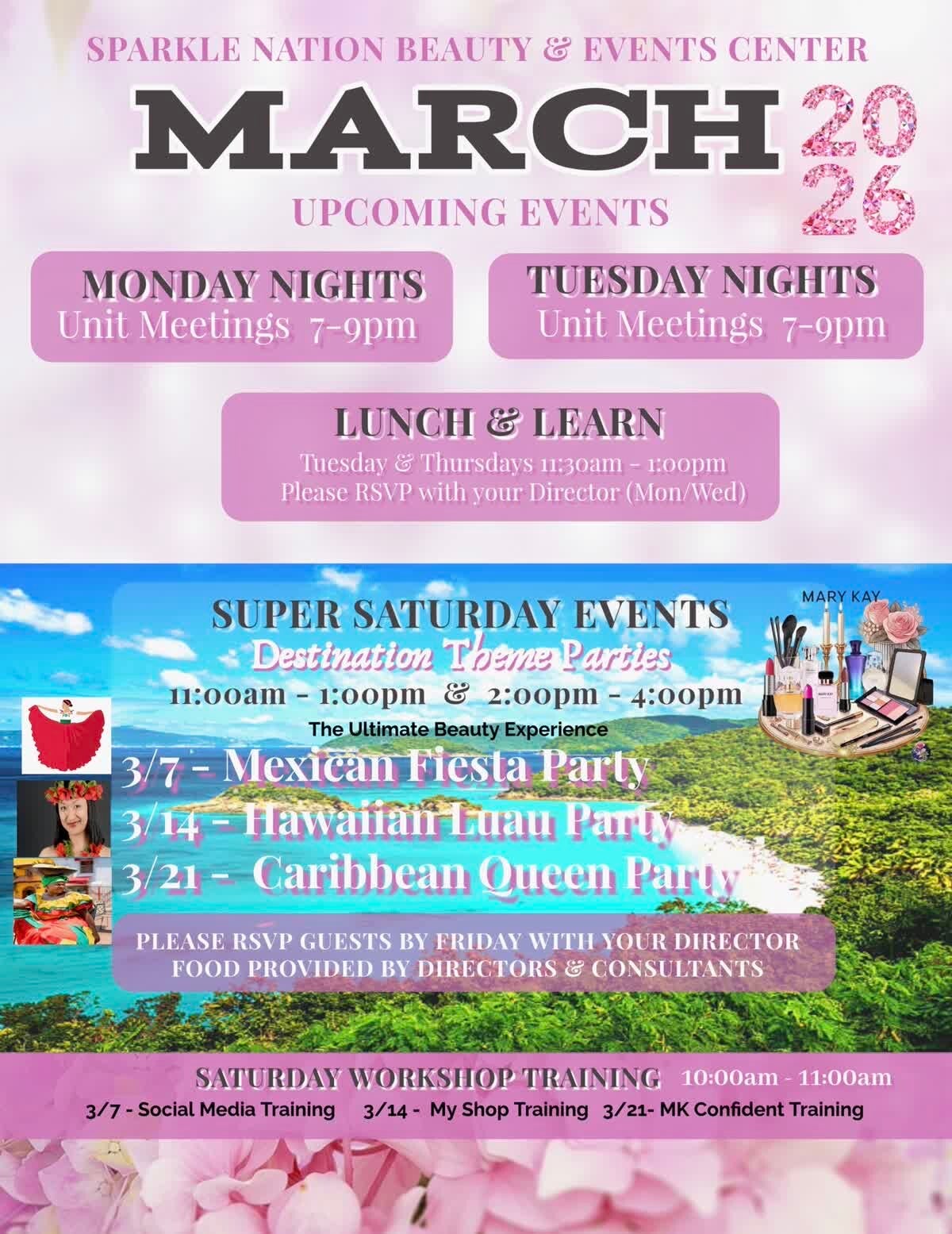 Welcome to the Sparkle Nation Events page! Here, you'll find all the exciting upcoming events and opportunities to connect, learn, and grow with our vibrant community. From business-building workshops to fun social gatherings, this page keeps you updated on everything happening within Sparkle Nation. Stay tuned for details on events designed to inspire, empower, and elevate your Mary Kay journey!