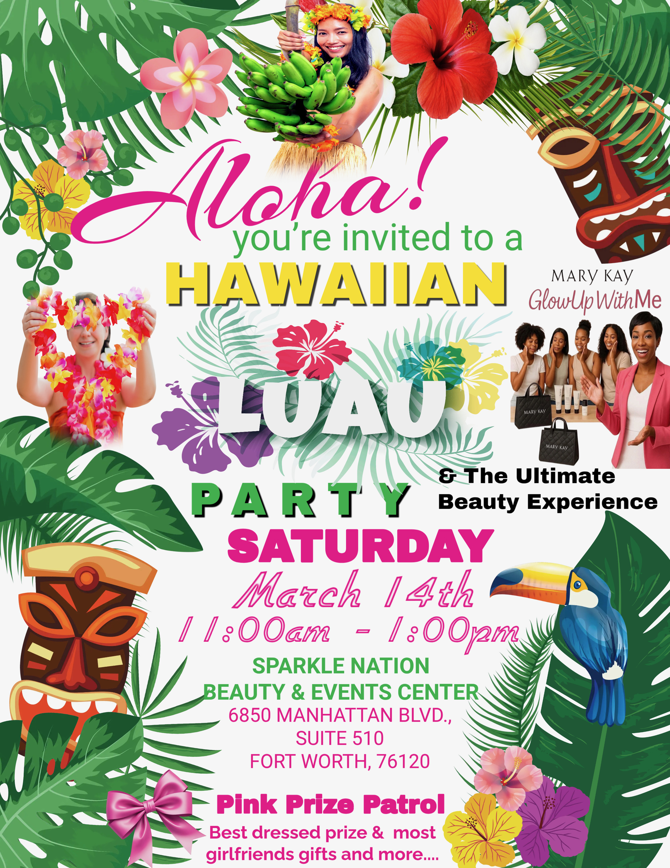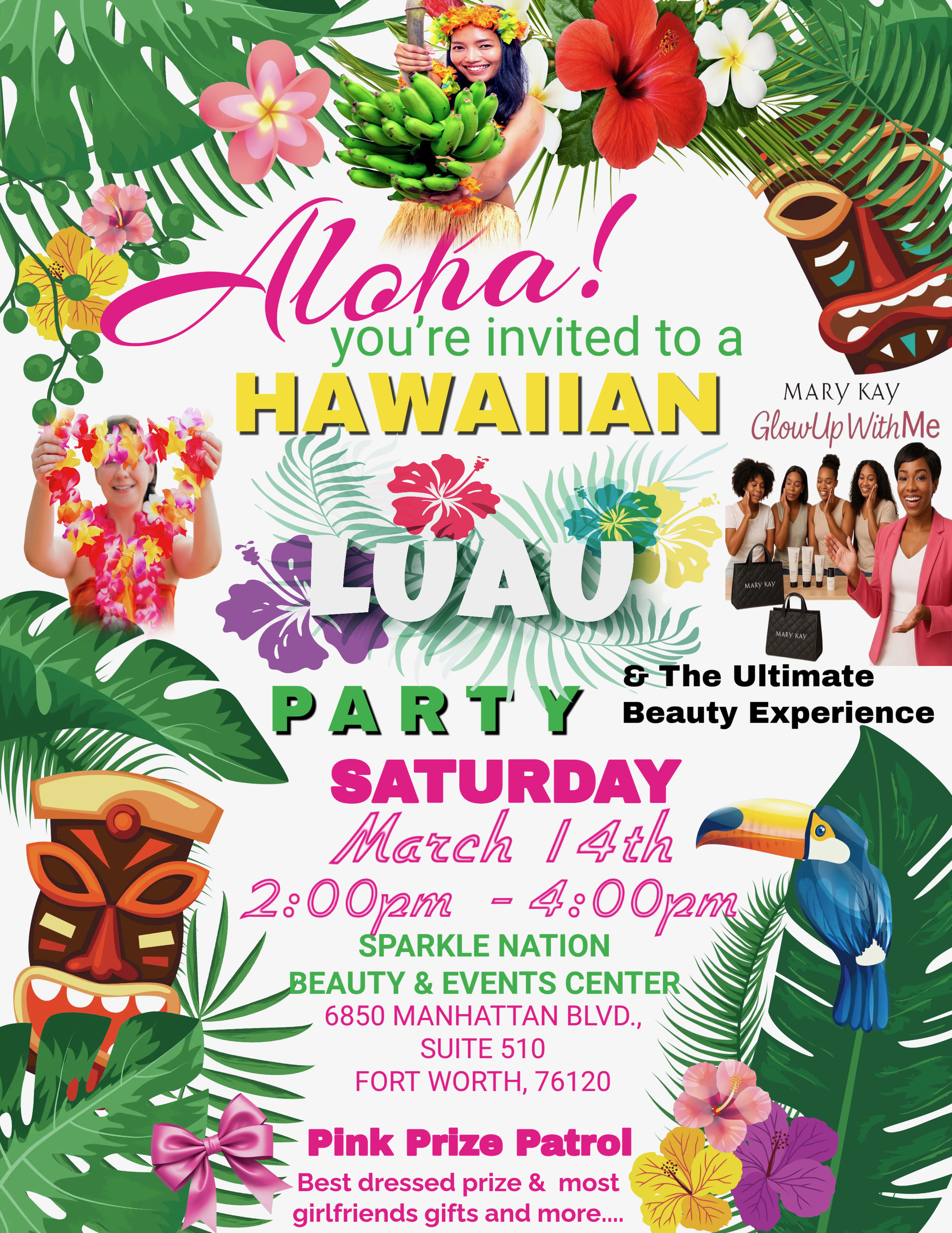 Aloha, beautiful! Get ready to escape to the islands for a tropical evening filled with glowing skin, good vibes, and island-inspired fun! Our Hawaiian Luau Party & Beauty Experience is all about radiant skincare, hands-on pampering, and vibrant summer glam while you sip, socialize, and unwind in true paradise style.