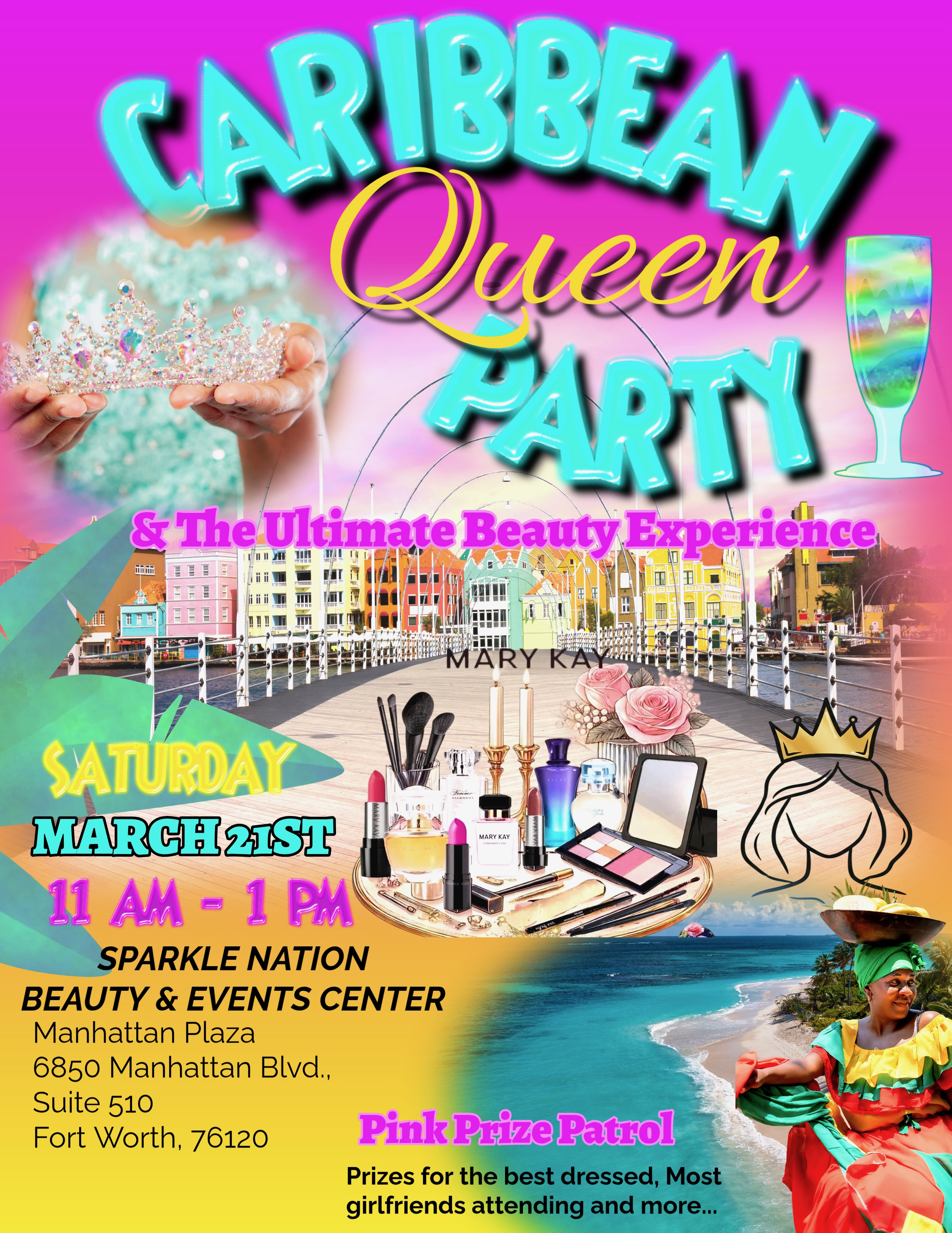 Enjoy tropical music, refreshing treats, glowing skincare moments, and a luxurious beauty session designed to make you feel like the queen you are. From flawless skin to bold, beautiful looks, this experience is all about confidence, color, and Caribbean flair.